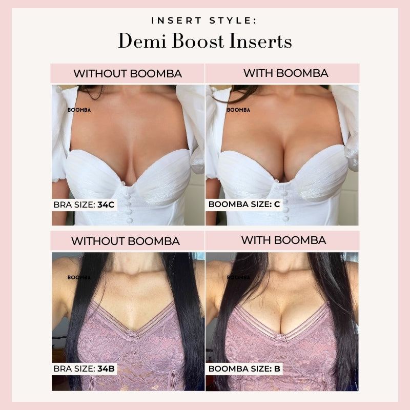 Demi Boost: The shortened version of our Ultra Boost. Lifts and adds 2 cup sizes, perfect for sweetheart necklines.