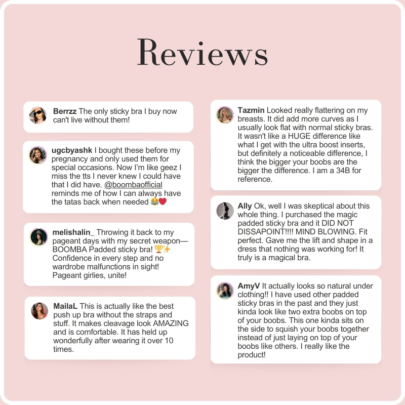 I have tried SOOOO many sticky bras and have hated all of them! I saw ads for these inserts and finally caved. I bought the Ultra Boost and Demi Boost. I wasn’t sure if they were going to work on me because I have very small boobs but these worked wonders! All of my low cut tops fit so much better now and the double sided stick is amazing. Do not walk, RUN to buy these!!!