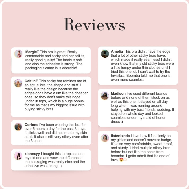 I have tried SOOOO many sticky bras and have hated all of them! I saw ads for these inserts and finally caved. I bought the Ultra Boost and Demi Boost. I wasn’t sure if they were going to work on me because I have very small boobs but these worked wonders! All of my low cut tops fit so much better now and the double sided stick is amazing. Do not walk, RUN to buy these!!!