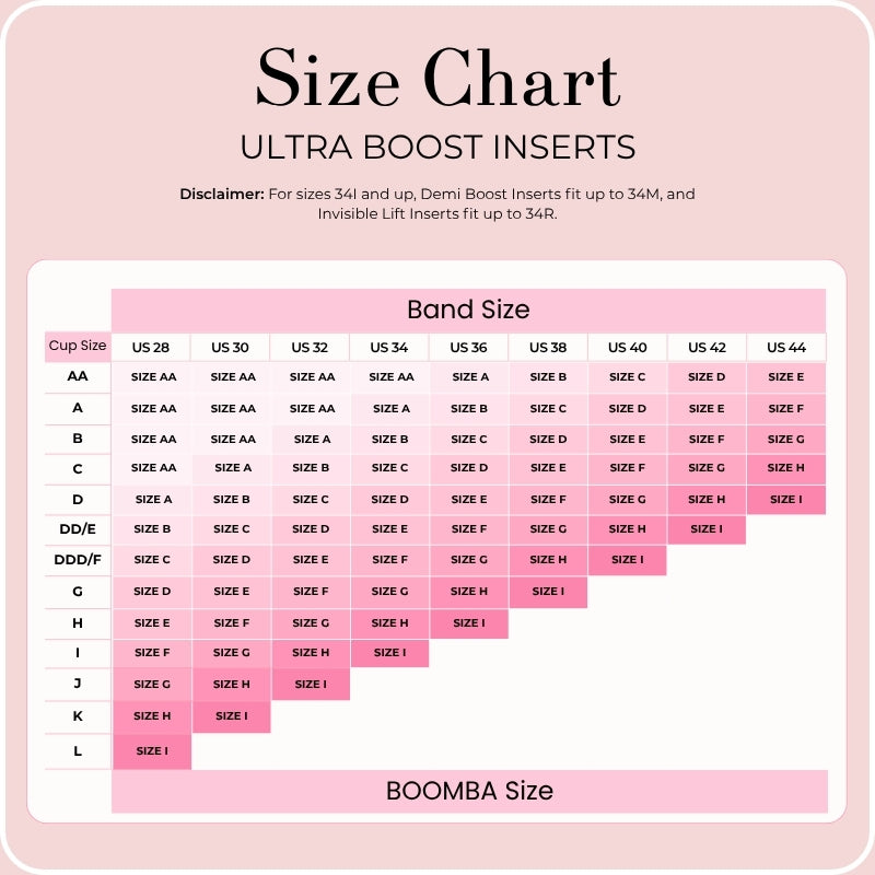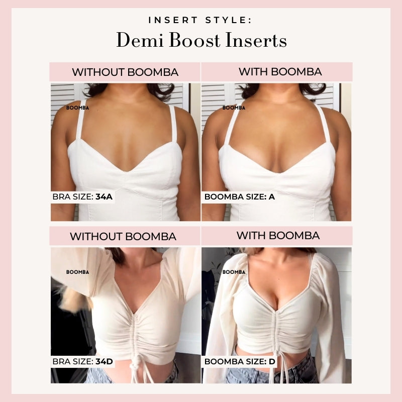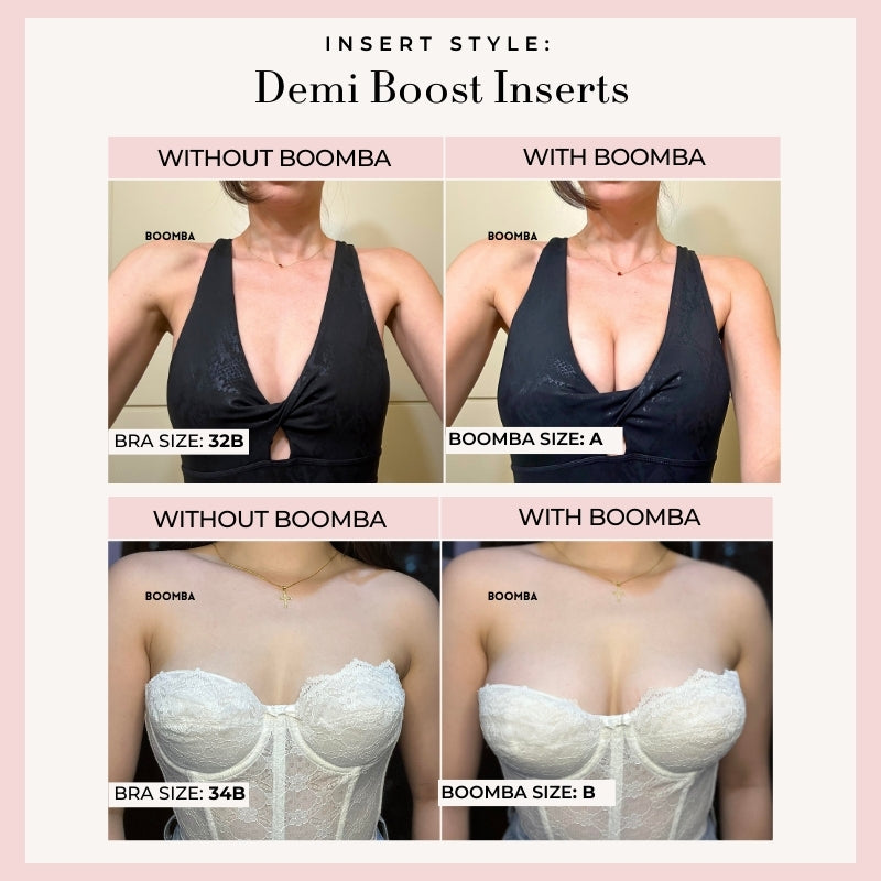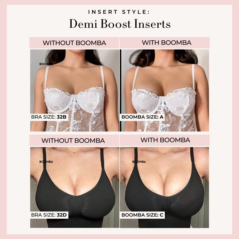 Demi Boost: The shortened version of our Ultra Boost. Lifts and adds 2 cup sizes, perfect for sweetheart necklines.