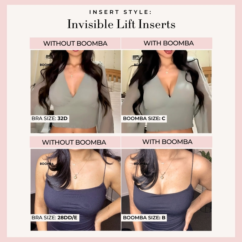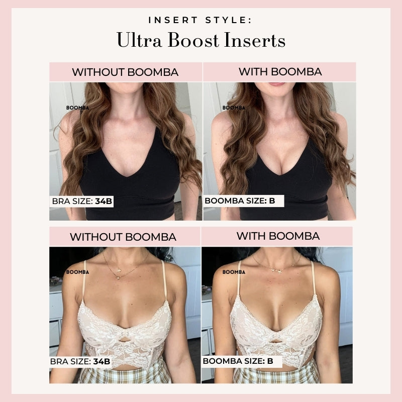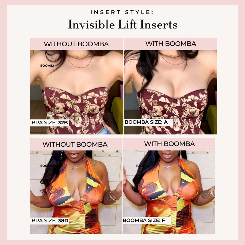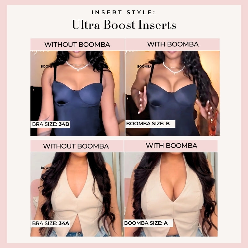 This bundle contains all three styles of our popular inserts, Ultra Boost, Demi Boost, and Invisible Lift. It also contains our best-selling Magic Nipple Covers (adhesive), Satin Nipple Covers, and BOOMBA Magic Strips.