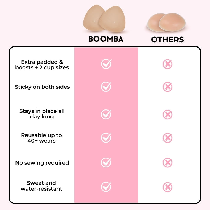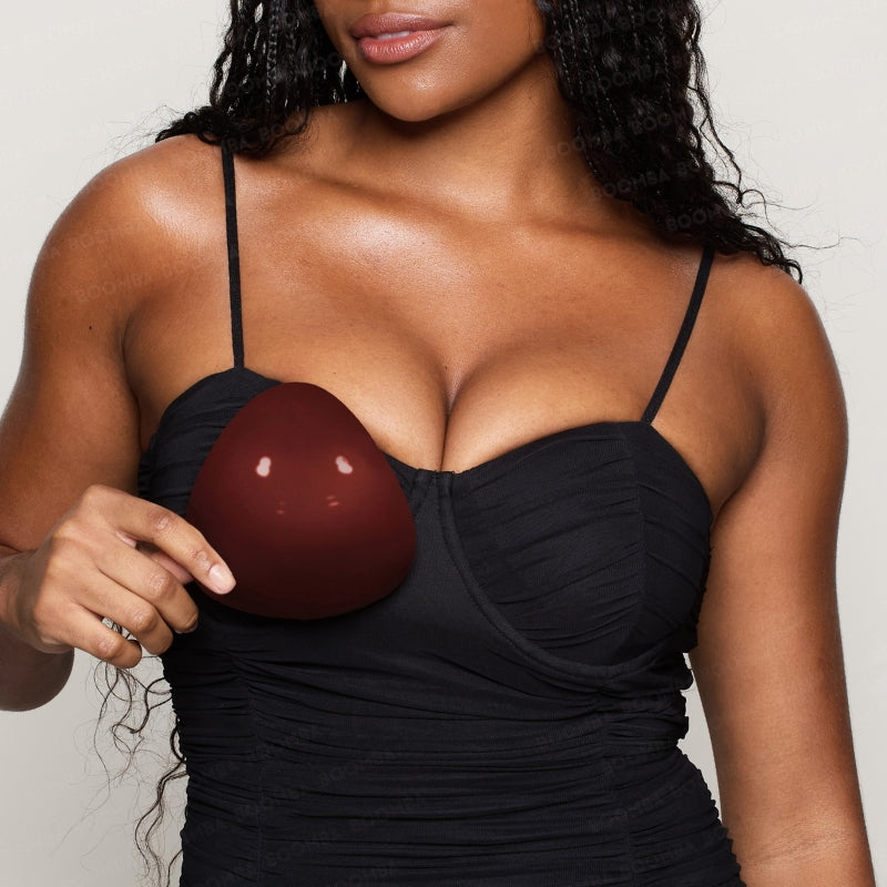 Unlike a sticky bra that is supported by the adhesive, BOOMBA inserts are supported by the clothing and cannot stay up by themselves. It is crucial to wear them in tight, structured, and fitted tops.