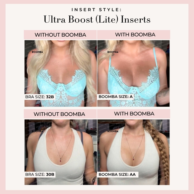 I have tried SOOOO many sticky bras and have hated all of them! I saw ads for these inserts and finally caved. I bought the Ultra Boost and Demi Boost. I wasn’t sure if they were going to work on me because I have very small boobs but these worked wonders! All of my low cut tops fit so much better now and the double sided stick is amazing. Do not walk, RUN to buy these!!!