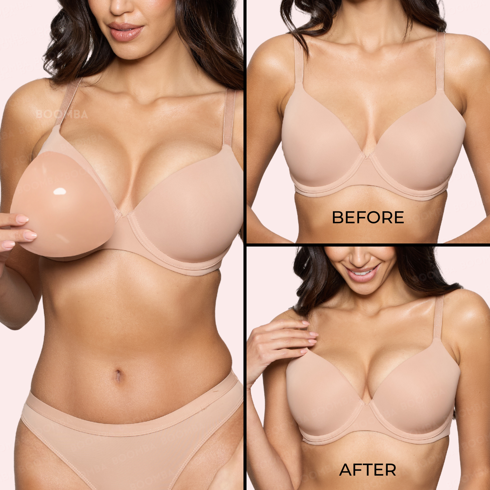 My overall experience was fantastic. I really love how now I can wear braless clothes. The inserts helped my insecurities. It's not that I have small breast but without these boomba inserts they seemed small in braless clothing, and now I have my boomba inserts in they seemed pushed up like never before. I highly recommend these bomba inserts it made me feel more confident wearing them :)
