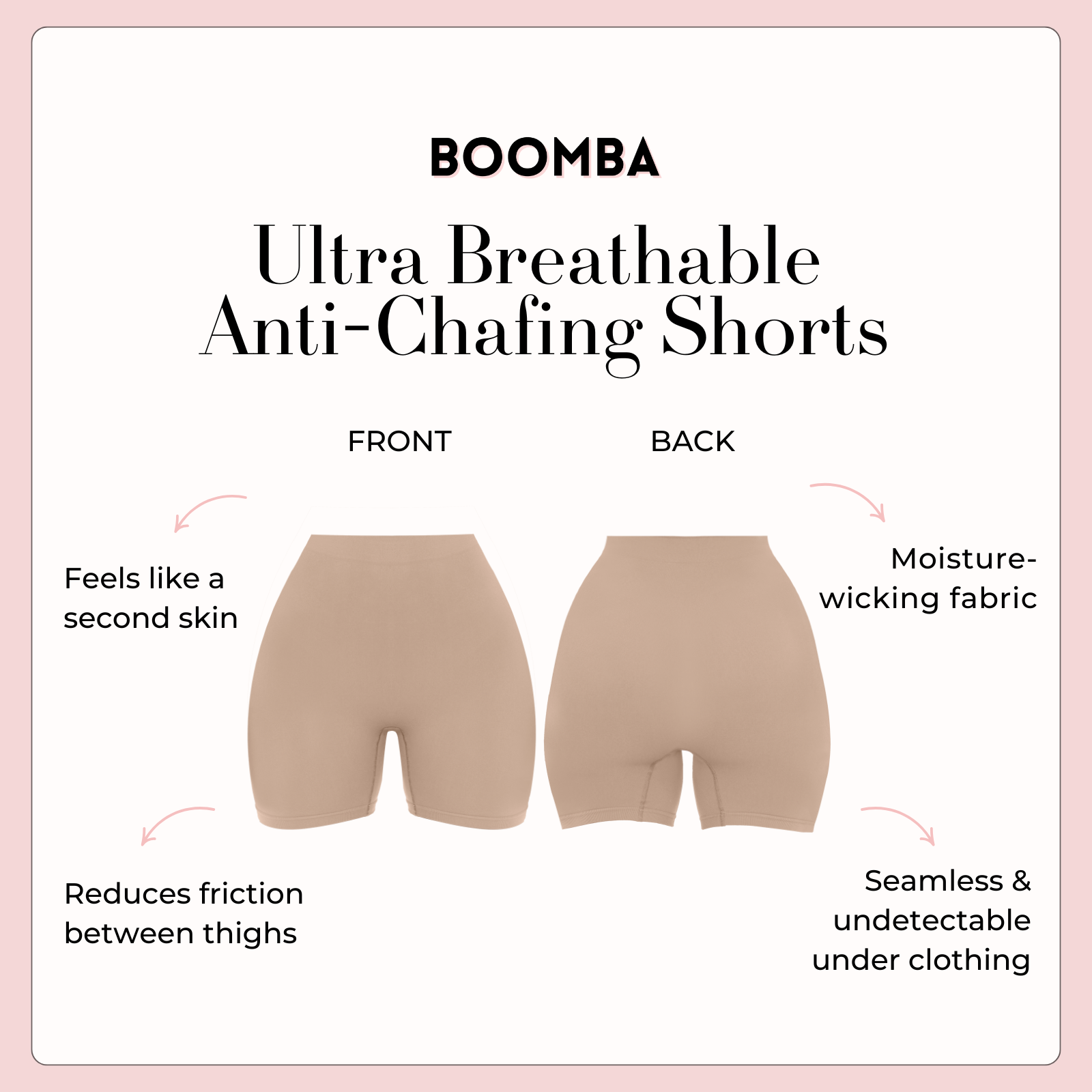 Thigh rub? Not today. BOOMBA’s Ultra Breathable Anti-Chafing Shorts are your go-to base layer for smooth, breathable comfort.